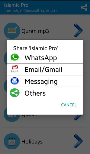 • Share Quran Ayat or Surah to your friends on Whatsapp, on Email, on Message and on other social networks