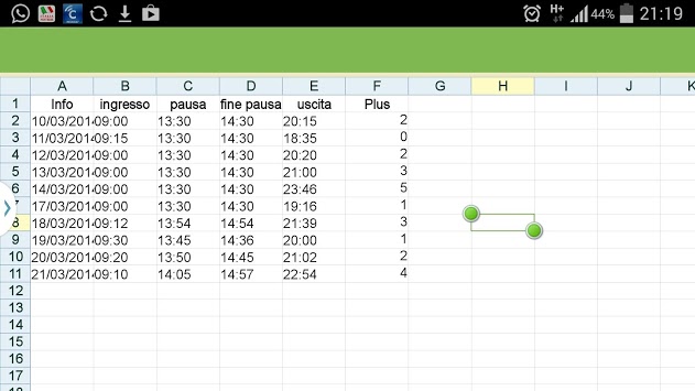 Handy application that helps you keep track of the actual hours worked, as well as the expense to have a report ready to be presented in excel format administration.