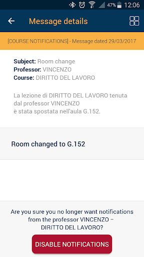 - receive real-time updates on postponed or extra lessons, and rooms changes;