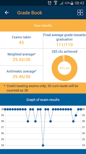 - view their progress in their studies (grades and credits accumulated, grade performance graph, etc.);