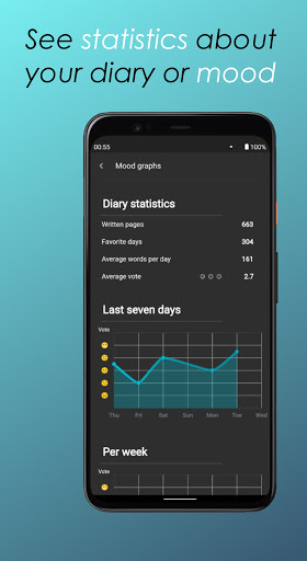 📜 Write about your day. You can organize one or multiple diaries in the best way. Add days, photos and pick your mood. Customize your diary and keep statistics.