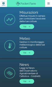 Dal 2017 utilizzabile su tutto il territorio Italiano, Pocket Farm è l’app che aiuta i coltivatori a tenere sotto controllo la propria coltivazione. In pochi passaggi si ottengono informazioni che fino ad oggi richiedevano procedure costose e di difficile utilizzo come la quantità di biomassa, lo sviluppo vegetativo della pianta e il livello di azoto del campo. Informazioni fondamentali per prevenire lo stress delle colture con conseguenti cali di produzione o, peggio, danni al raccolto. L’app, realizzata dal Gruppo Cattolica Assicurazioni in collaborazione con l’Università di Milano, è utilizzabile per il monitoraggio meteorologico di oltre 250 varietà colturali.