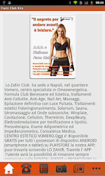 ha sede a Napoli, nel quartiere Vomero, centro specialista in Omeoenergetica. Formula Club Benessere ed Estetica, trattamenti Anti-Cellulite, Anti-Age, Nail Art, Massaggi, Epilazione definitiva con Luce Pulsata, Trattamenti estetici Fotoringionavimento, Solarium, Sauna, Idromassaggio ad Onde subsoniche, Winplate, Cavitazione, Cellutim, Thermtrim, DeepBeuty, Elettrostimolazione per tonificazione e lipolisi, Pressoterapia, Esame Adipometrico ed Impedenziometico, Consulenza Medica. CENTRO ESTETICO VOMERO.Oggi e’ disponibile GRATIS per tutti i possessori di dispositivi ANDROID (smartphone o tablet) su PLAYSTORE la nostra APP; puoi trovarla scrivendo LO ZAHIR. Tramite l' APP