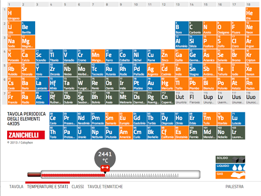 - la temperatura e gli stati corrispondenti di ogni elemento