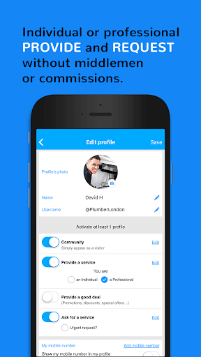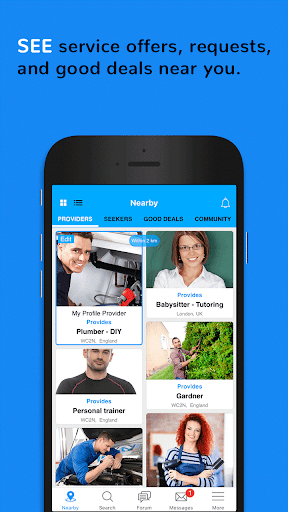 See members who offer or seek a service near you. Profiles are listed by distance from you. The first profile is always yours. Edit your profile to provide a service, a good deal, to ask for a service, or to simply appear as a member of the WeFind community to chat and help each other with your neighbours and the people around you.