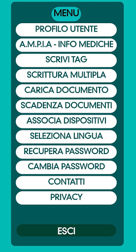 L'applicazione ICE-KEY TAG permette di memorizzare e di visualizzare i seguenti dati: