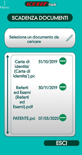 I dati anagrafici e medici inseriti all'interno dell'applicazione ICE-KEY TAG sono immessi in autocertificazione e sotto la totale responsabilità dell'utente.