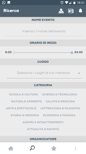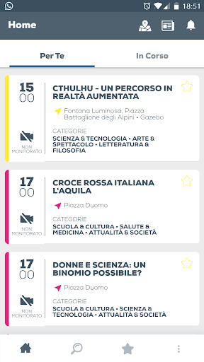 * Social: sarà possibile condividere gli eventi sui maggiori social network, associare un Like agli eventi, e votare per il vostro ricercatore preferito.
