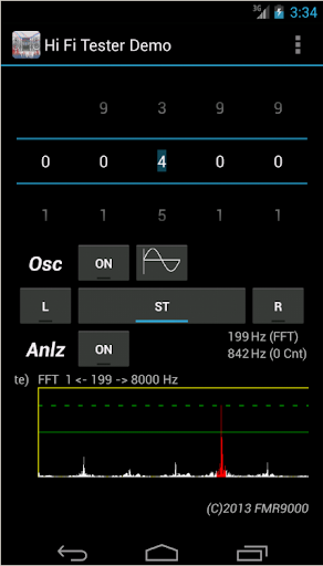 Frequencies range from 16Hz to the maximum possible for the device, selectable in steps of 1,10,100,1000,10000 Hz by pick number.