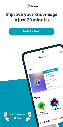 - Take the 4books app to the gym, on vacation, while you're in the car or out walking the dog. Learn quickly, wherever you are, thanks to our audio books available in short summaries.