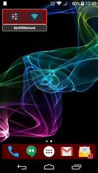 Home Screen Widget to turn wifi off or on. When connected to a wlan, the widget shows its name (SSID), with the advantage of constantly knowing