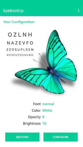 Eye Boot Up works on four factors: magnification of characters, light, depth and color. Todays mobility devices are everything and that's why we decided to create an app that is user-friendly and socially useful, in addition to be an enhancement for user who may require additional visual adjustments to read, to write, or utilize todays mobile devices.