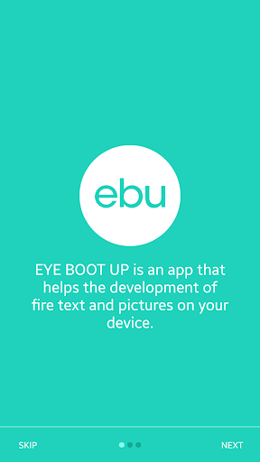 Eye Boot Up (EBU) is a mobile application to provide additional viewing accessibility to users who require enhanced modification to view information on mobile devices.  Eye Boot Up is safe, is looking ahead, and provides the capability for users who require additional adjustment to focus,magnification, lighting, depth or color to their viewing preference. Eye Boot Up is an application that acts, specifically, between the device and the client, via a series of actions that can modify the focus/magnification, lighting, depth, or color on screen through a preset system the user will choose according to their viewing preference.