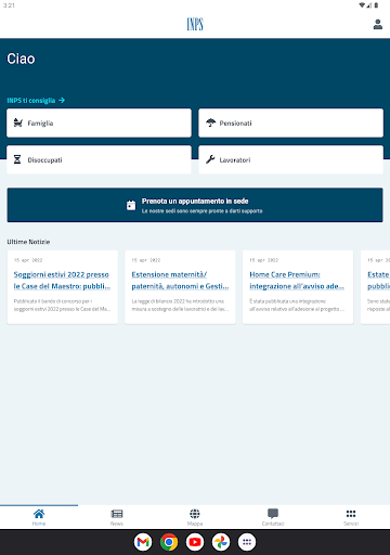 Ana görünüm, en son haberleri görüntülemenize, enstitünün sosyal ağlarına erişmenize, en sevdiğiniz hizmetleri belirli hizmetlere doğrudan gezinmeye izin vermenize olanak tanır. INPS mobil uygulamasında bulunan hizmetlerin bir kısmı için gerekli olan kimlik bilgileri.