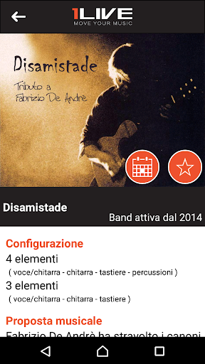 Cercalo/a nella GUIDA ARTISTI e mettilo/a nei tuoi preferiti, così sarà più semplice avere a portata di mano tutte le loro date e poterle seguire nei locali dove suoneranno. Cliccando sull’icona del calendario potrai visualizzarle e salvare i loro live nel tuo smartphone.