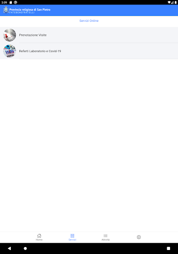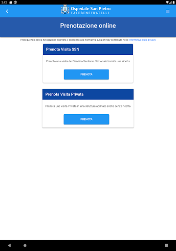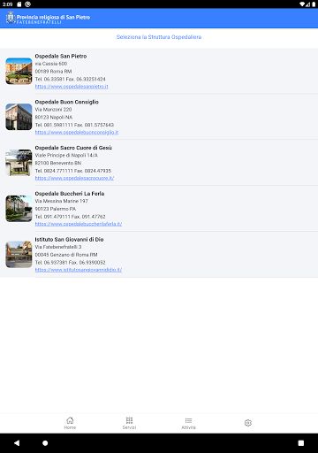 Với ứng dụng này, bạn có thể truy cập dịch vụ đặt phòng để truy cập và kiểm tra đường cứu của các bệnh viện của "Tỉnh Roman Fatebenefratelli