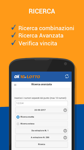 Puoi finalmente ricercare per numeri (separati dal punto), data, numero estrazione iniziale e finale.