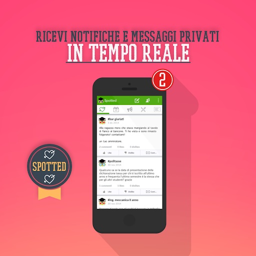 Publish your friendship, love & hate messages, as well as claims and suggestions - always anonymously. Using the spotted section you can publish your posts without having to pass through Facebook!