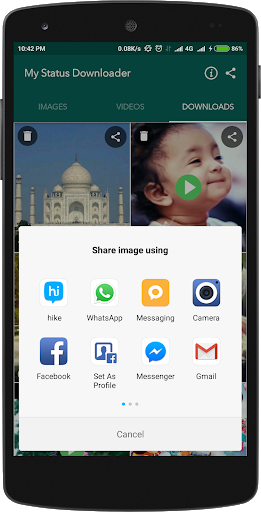 #Downloads - Here you can find all your downloaded status with delete and share options.