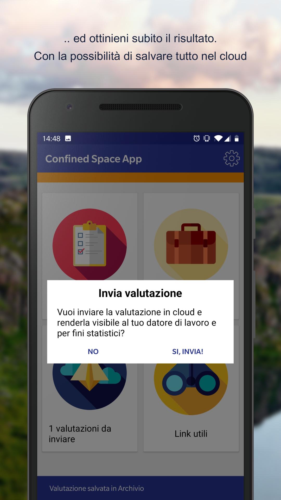 L’app è stata realizzata dal Dipartimento di Ingegneria Industriale dell’Università di Bologna, con il supporto del gruppo Banca delle Soluzioni – Ambienti Confinati (http://safetyengineering.din.unibo.it/banca-delle-soluzioni), grazie al cofinanziamento ottenuto da INAIL Regione Emilia Romagna, mediante Bando Regionale 2016.