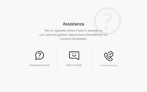 • Assistenza: ovunque tu sia e in qualsiasi momento, puoi richiedere assistenza, chattare con noi o essere richiamato. A seconda di ogni tuo bisogno, noi ci siamo.