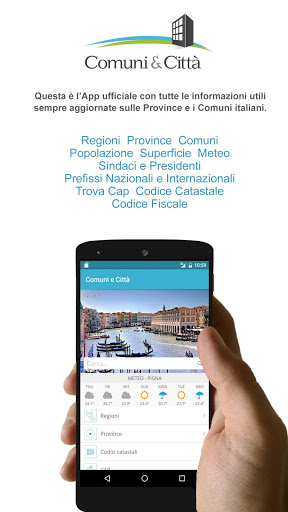 Comuni e Città è l’App ufficiale del portale omonimo che ogni giorno fornisce a migliaia di utenti informazioni utili sui Comuni, le Città, le Province e le Regioni d’Italia.