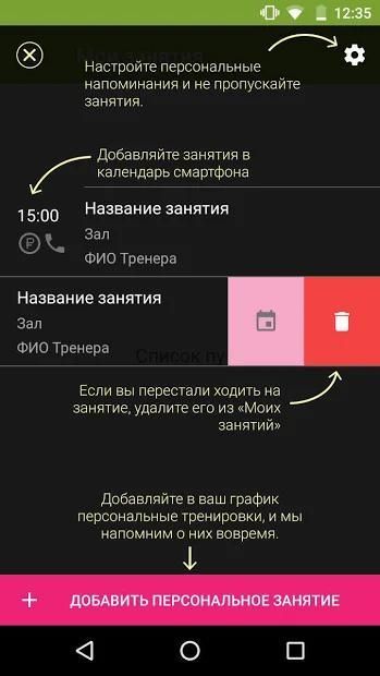 With the help of the application you can follow the news, the club schedule, sign up for classes, get information on changes in the schedule and special offers (open seminars, promotions, discounts).