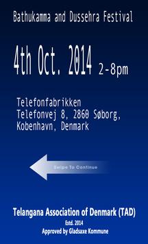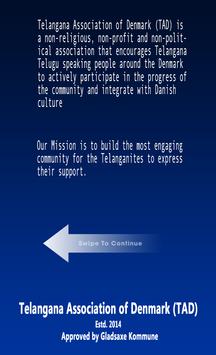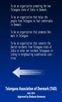 Telangana Association of Denmark (TAD) is a non-religious, non-profit and non-political association that encourages Telangana Telugu speaking people around the Denmark to actively participate in the progress of the community and integrate with Danish culture.