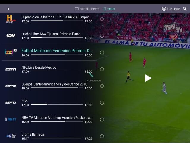 • Transmisión de canales de tv, con deportes, programas y eventos en vivo