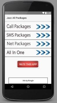 all jazz packages.jazz package.call packages,internet packages 3g and 4g,also sms packages.