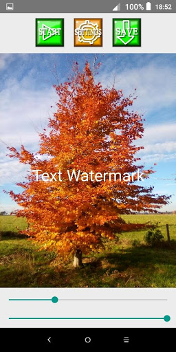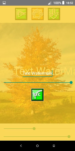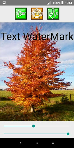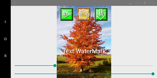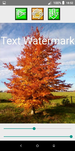 With this app you can create text watermark's on pictures. With the slidebars you can adjust the size, transparency and color(black