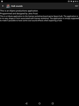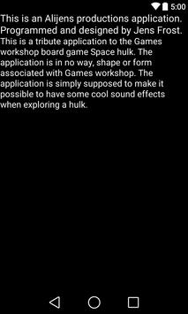 This is a tribute application to the Games workshop board game Space hulk. The application is in no way, shape or form associated with Games workshop. The application is simply supposed to make it possible to have some cool sound effects when exploring a hulk.