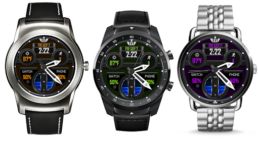 Futuristic analog and digital watchface for WatchMaker with color changer. Tap the logo to switch colors and cycle through over 20 colors. This watchface has key info at a glance including dual enhanced battery meters, weather, steps, day/date, and more. For Android Wear and Tizen watches with WatchMaker.
