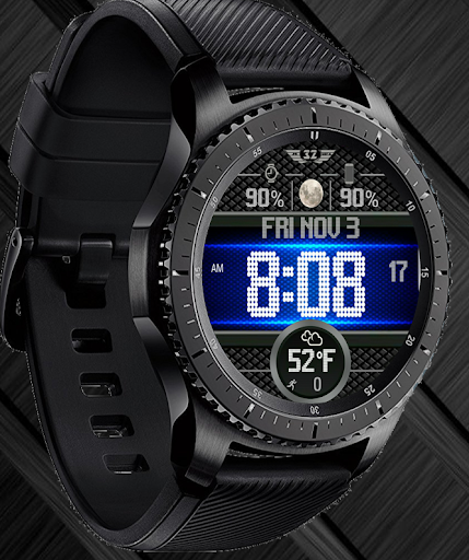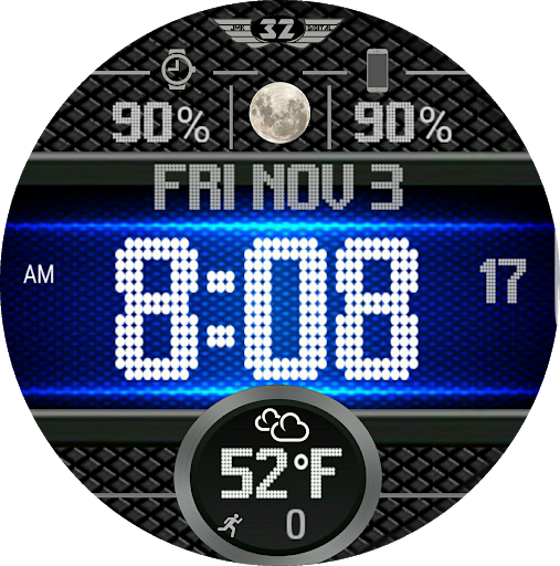 This Viper One watch is a distinct, multi-informational watchfaces with all pertinent info at a glance and features a 12hr digital clock with seconds, with watch and phone battery % levels, calendar, current weather, step counter and moonphase in a stylish face that looks fantastic on a wide variety of Android Wear smartwatches.