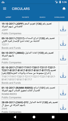 The application provides notifications to the user about the latest news, circulars and disclosures published on the ASE website, it also provide searching capability for historical disclosures , as long as the ability to save it on the user's mobile device. In addition to that the application provides the daily market summary, and the live prices of securities traded on the Stock Exchange.