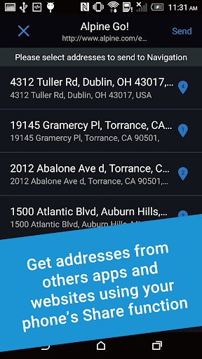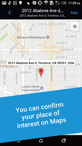 - Get place addresses from others applications and websites using Android phone's Share function.