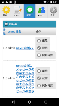 主な機能 ・メッセージ新規、送信対象グループ選択 ・プッシュ通知で受信したメッセージ表示 ・メッセージに返信 ・メッセージ一覧管理 ・ユーザー管理など