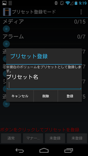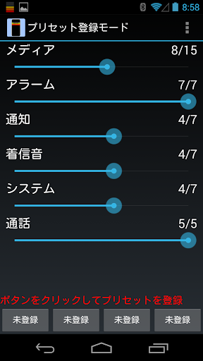 -プリセットを登録するとボリュームコントロール画面とステータスバーにプリセットボタンが表示されます。