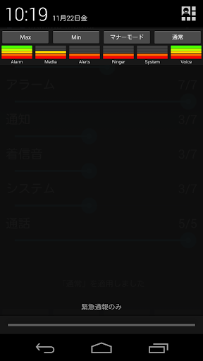 ステータスバーのアイコンにメディアのボリュームを表示し、ステーバスバーを引き下ろした部分にすべてのボリュームを表示します。