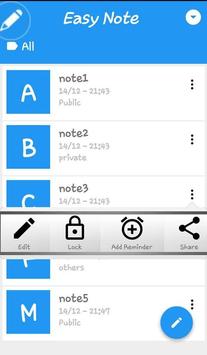 Easy Note is an application that enables you to add noes, set locks to any note so that people who do not know the password could not see its content, share or delete notes, and set reminders to remind you about certain notes through notifications. The application is characterized with a Head Note system, which enables you to access it from anywhere on your mobile phone.