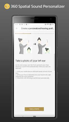 Use your smartphone camera to capture your ear images and create your hearing characteristics, to be stored onto your account. You can retrieve the data from your account onto the supported Walkman and readily enjoy 360 Reality Audio.