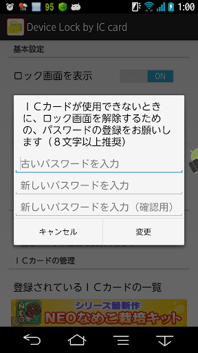 端末のロック/アンロックをICカードで行えるようになります。