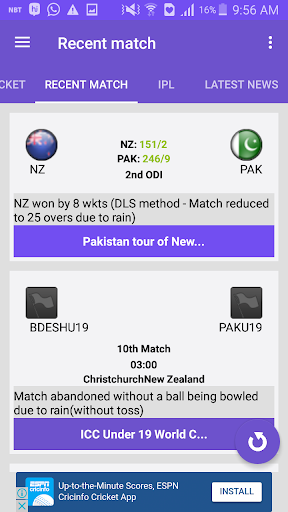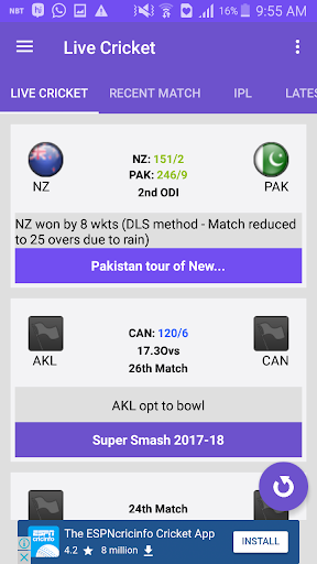 Features: ball by ball display score. automatically refresh score. upcoming matches display in list. full scoreboard. display recent matches latest news ipl matches