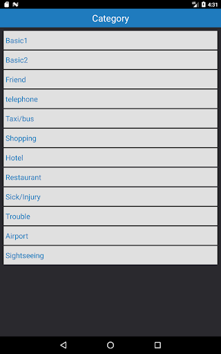 select a category, then word or conversation sentence will appear. The answer comes out when you tap under the word.