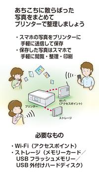 プリンターに接続された外部メモリーに写真を送信・保存できます。スマートデバイス内の写真がいっぱいになったときなど、空き容量を確保するのに役立ちます。