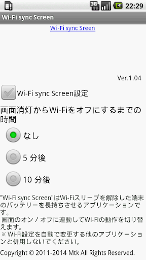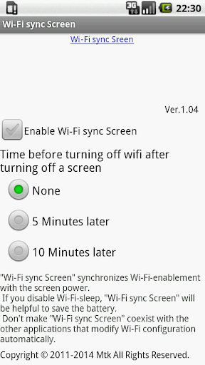 "Wi-Fi sync Screen" synchronizes Wi-Fi-enablement with the screen power.