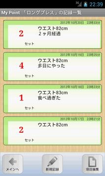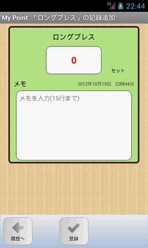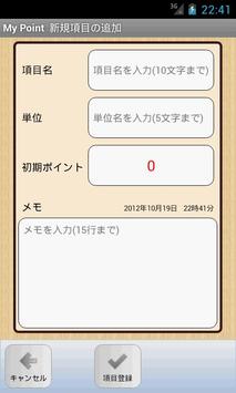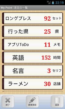 例えば、項目を「腕立て」、ポイントの単位を「回」とすると腕立てをやるごとに、昨日は50回、今日は40回、・・・と入力することで、