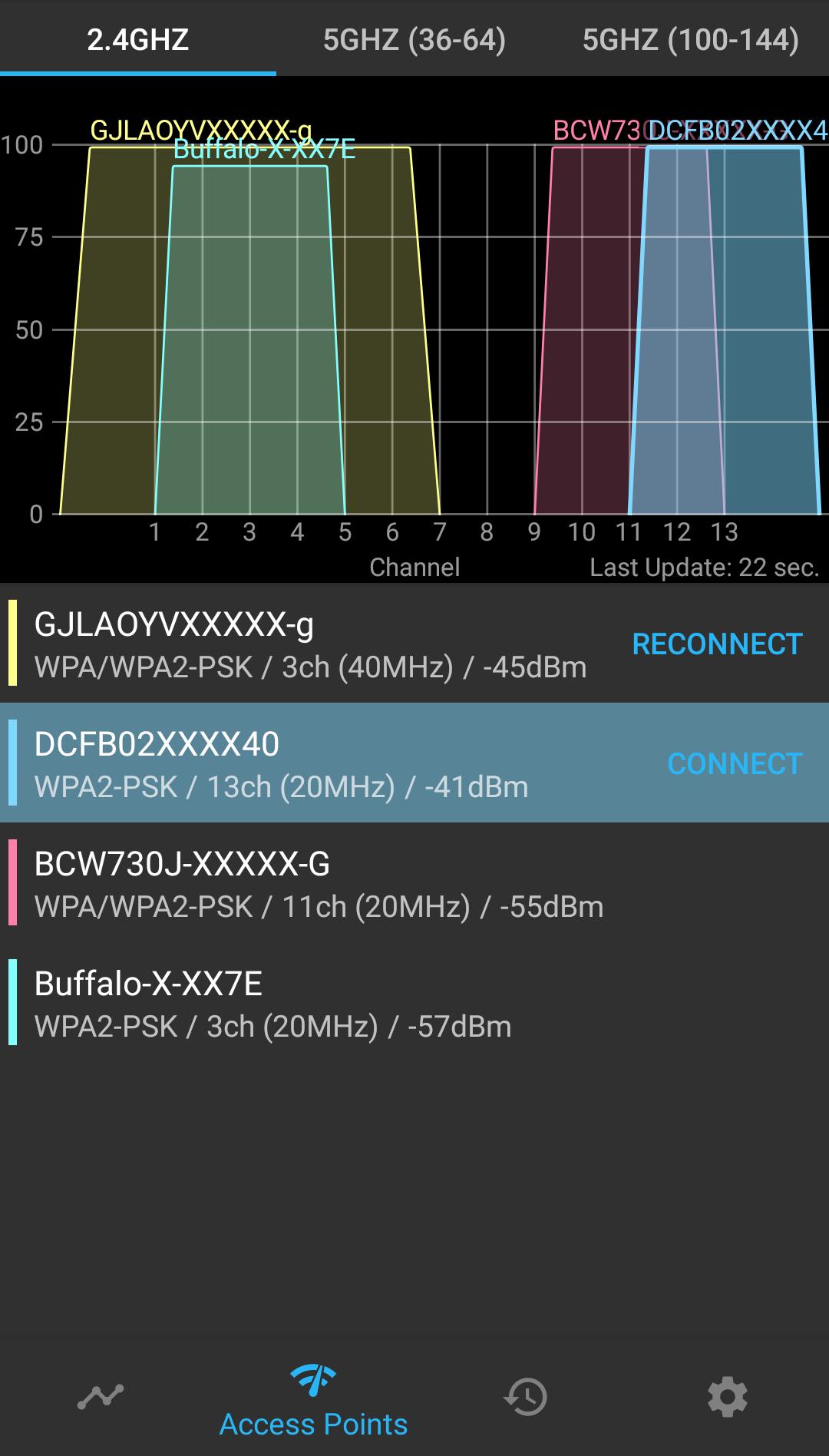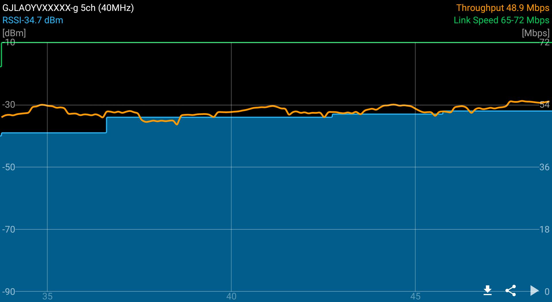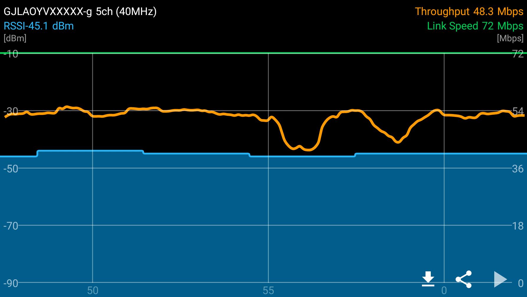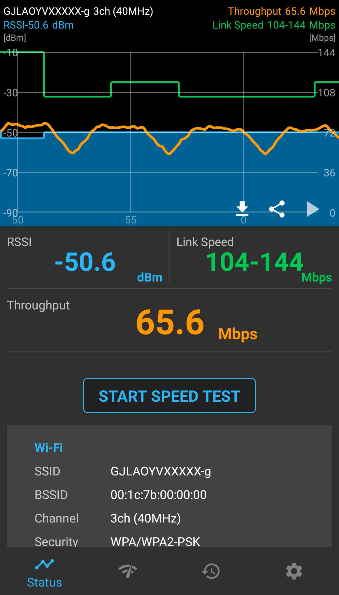 You can check time-series changes of RSSI(signal strength), Link Speed (logical speed between your device and the Wi-Fi access point) and Throughput.
