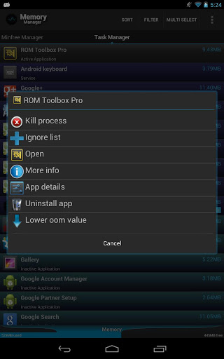 Memory Manager is more than just a task manager, it improves Android's built in task killer. This app will
