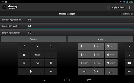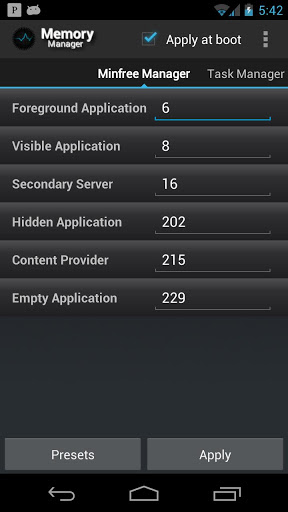 Memory Manager comes with a built in minfree tweaker and task manager. Minfree refers to the minimum free memory value, e.g. the threshold of free RAM below which idle tasks are killed. Tweaking these values can